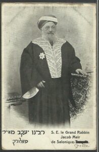 A JEWISH RABBI IN A TINY ROOM FULL OF MANUSCRIPTS AND BOOKS, PERFORMING HIS DUTY