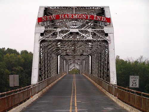 Uranus is on Taurus 6: A BRIDGE BEING BUILT ACROSS A HIGH NARROW GORGE – I took this photo when I was driving across the bridge from Illinois to Indiana several years ago in my search for Elsie Wheeler (the spiritualist medium who gave birth to the Sabian Symbols). There was an old man collecting tolls on the bridge – pay $1 and pass into New Harmony – a truly beautiful and amazing place that is like an oasis.